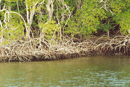 - the complex of mangroves, tens to hundreds of metres wide, gradually absorbs
